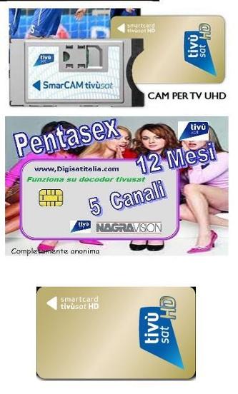 Vendita di card per la visione di Canali hard trasmessi in digitale da satellite Non necessita attivazione , Non necessita abbonamento Formato anonimo Alla scadenza,si butta la vecchia carta Sconto su un nuovo acquisto