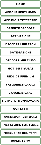 Digisat antenne, è rivenditore: abbonamenti a luci rosse,e card per adulti i canali ricevibili sono : xxx Redlight, MCT MultiChannel television, Inxworld - Freex TV, Dorcel TV, XXL, Sex View, Private Spice, sixxx, Conto TV, Teleitalia, Glamour Plus, Premiere, Euro 1080 HD, Canal Plus, Ab-Sat, BIS, Mediaset Premium, La7 Cartapiu', Quantum, inoltre sono disponibili tutti i marchi prestigiosi delle migliori case: Fuba, Digiquest, kathrein,Humax,Freewave, Invacom, ritar, Televes, Mitan, Tecnotel, Superjack, Stab, Triax, Telesystem, Clarke Tech, Fairmate, Illusion, Dreambox, Emtech videosat,itc,duolabs,matrix,diablo cam,xcam, premium irdeto & viacces,Altamente specializzata in antenne, di tutti i generi parabola, direzionale logaritmica, per frequenze da 0,3 mhz a 6 Ghz off-set,dipoli radioamatoriali, costruzione produzione rorniture, radioamatoriale, tralicci ripetitori analogici o digitali gap-filler, ponti radio wi-fi antenne per 2,4 ghz o 5,4 Ghz ripetitori telefonici per zone d’ombra autorimesse, magazzino, sottopassi, ristoranti, tunnel, gallerie, seminterrati,supermercati, laboratori, edifici pubblici dove il segnale telefonico o il telefonino non prende.Servizio di assistenza tecnica , riparazione di decoder digitali terrestri e satellitari,impianti di antenna centralizzati radio tv, trsferimenti digitali ,Digisat elettronica satellite, da noi puoi trovare: abbonamenti a TV internazionali e per adulti, cam, smart card, parabole, LNB, alimentatori, switch, multiswitch, divisori, modulatori di segnale audio-video,TV e monitor, antenne, supporti, cavi, prese scart, commutatorii, Diseqc a due e quattro uscite ,connettori, ricevitori satellitari, ricevitori DTT, decoder , misuratori di segnale, misuratori di campo Rover , unahom, prodig, programmatori, motori, ripetitori di telecomando, lettori DVD, navigatori satellitari, memory cards, pc cards, telecomandi, vasto assortimento di artcoli e accessori satellite.